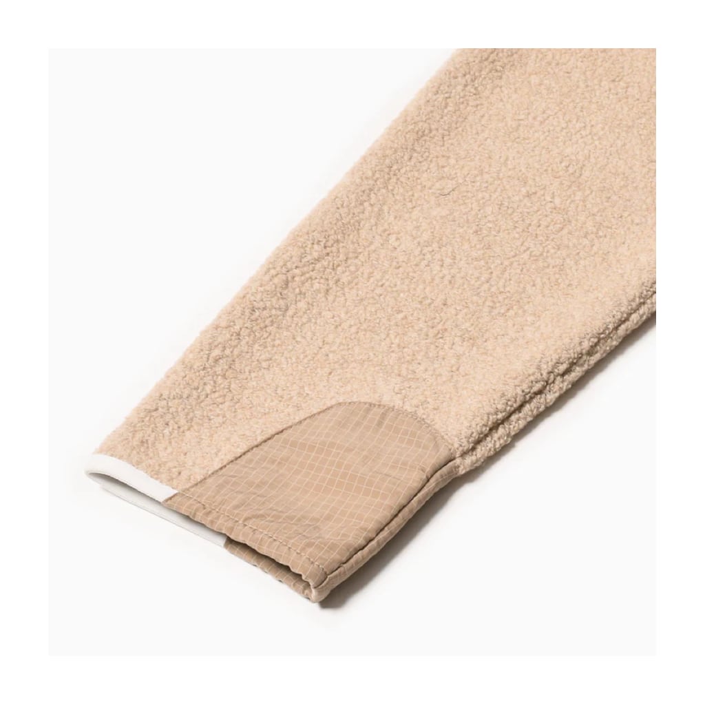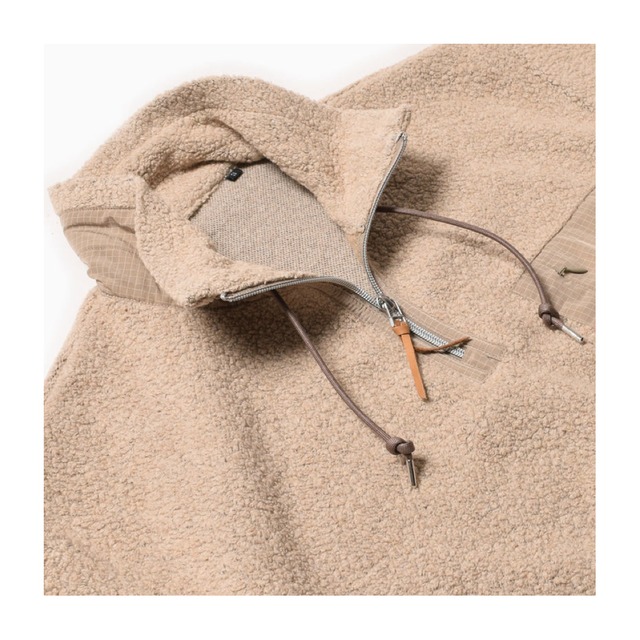 伝統的な繊維業の街、イタリア北西部のプラートで150年以上リサイクルウールを生産している「CALAMAI」社。再生ウールとマイクロ化繊糸を混紡したエアリーなボアフリースを使用したオーセンティックなプルオーバー。