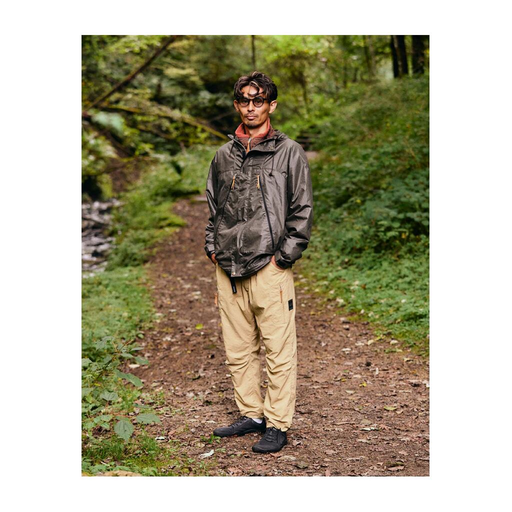日本製のオリジナルボディは、身幅にゆとりを持たせレイヤリングしやすいナチュラルシルエット。特徴的なフロントの大型ファスナーは、ポケットとベンチレーションを兼ね、開閉することで蒸れや体温を調整することができる。ポケット裏は漁猟の網をリサイクルした「REAMIDE」メッシュを使用。フード形状は立体的なパターンにより風雨をシャットアウト。