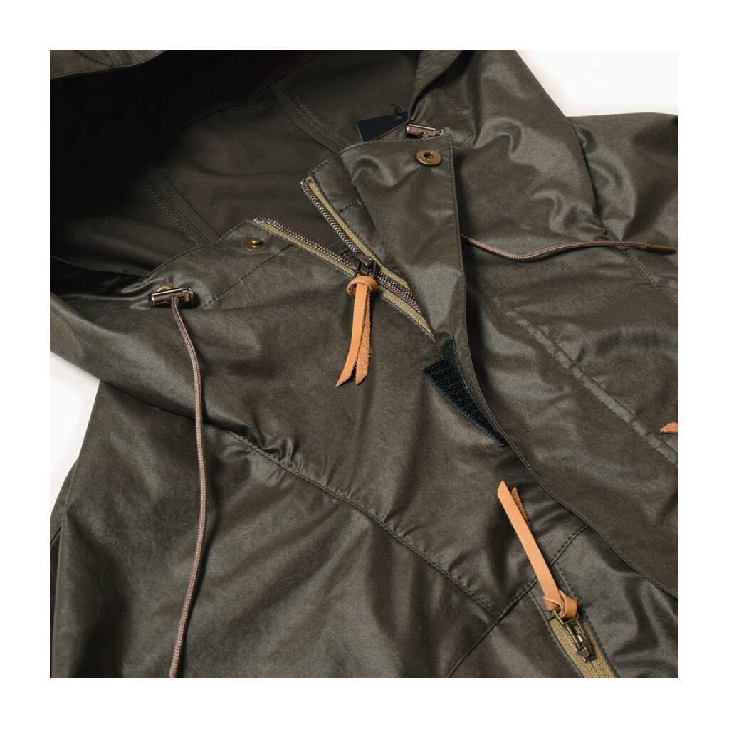 オーセンティックなワックスドコットンの風合いを持つ機能素材を使用。